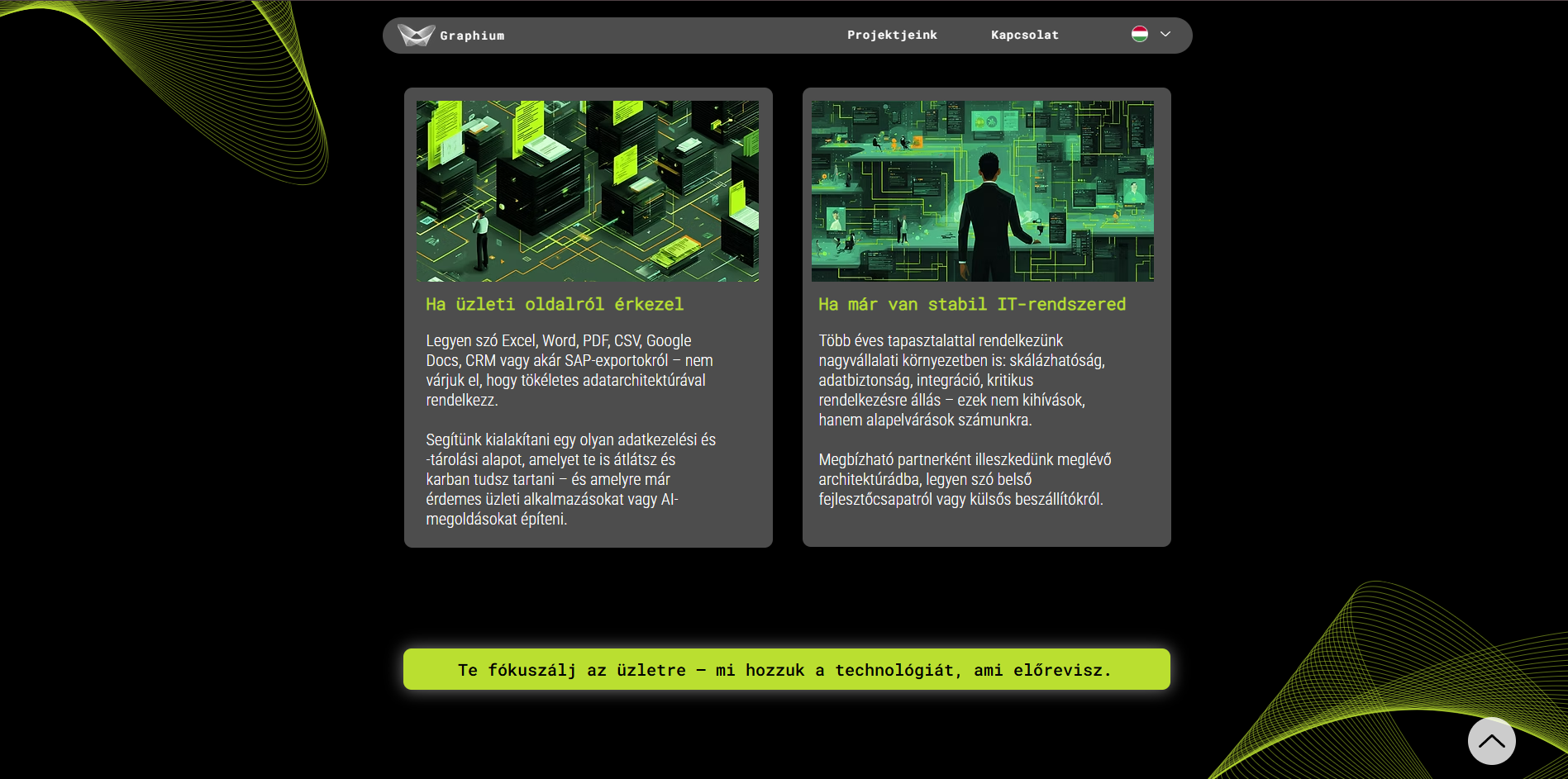 És íme a Graphium új weboldala! Letisztultabb, ütősebb, lényegretörőbb! Pont, mint a szintén friss üzleti stratégiájuk. Ha érdekel a digitalizáció és az AI, és fontos, hogy a céged/vállalkozásod up-to-date legyen, akkor ne habozz felkeresni őket. Tanácsadástól megvalósításig tényleg bármiben segítenek.