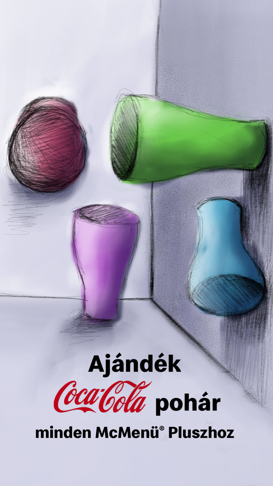 Egy szintén nagyon izgalmas mekis projekt volt, ahol a legnagyobb kihívást a fotózás jelentette. Sok-sok kutatás után arra jutottunk, hogy a koncepció optikai illúzió legyen, mintha minden pohár különböző térben lenne, de mégis egyben. Ehhez pluszban hozzáad a poharak által vetett színes árnyék. Nehezítés képpen csak 1 agad poharat kaptunk, így nagyon kellett vigyázni össze ne törjük őket.
