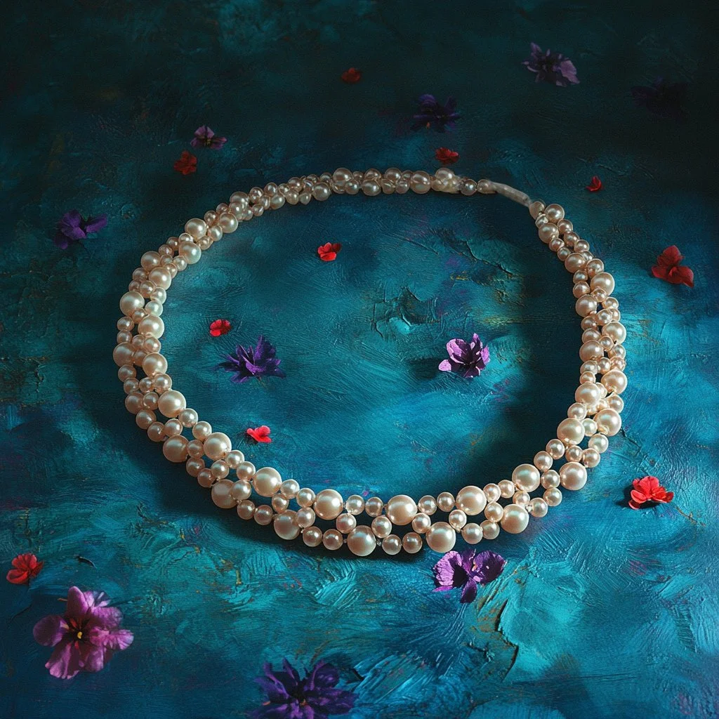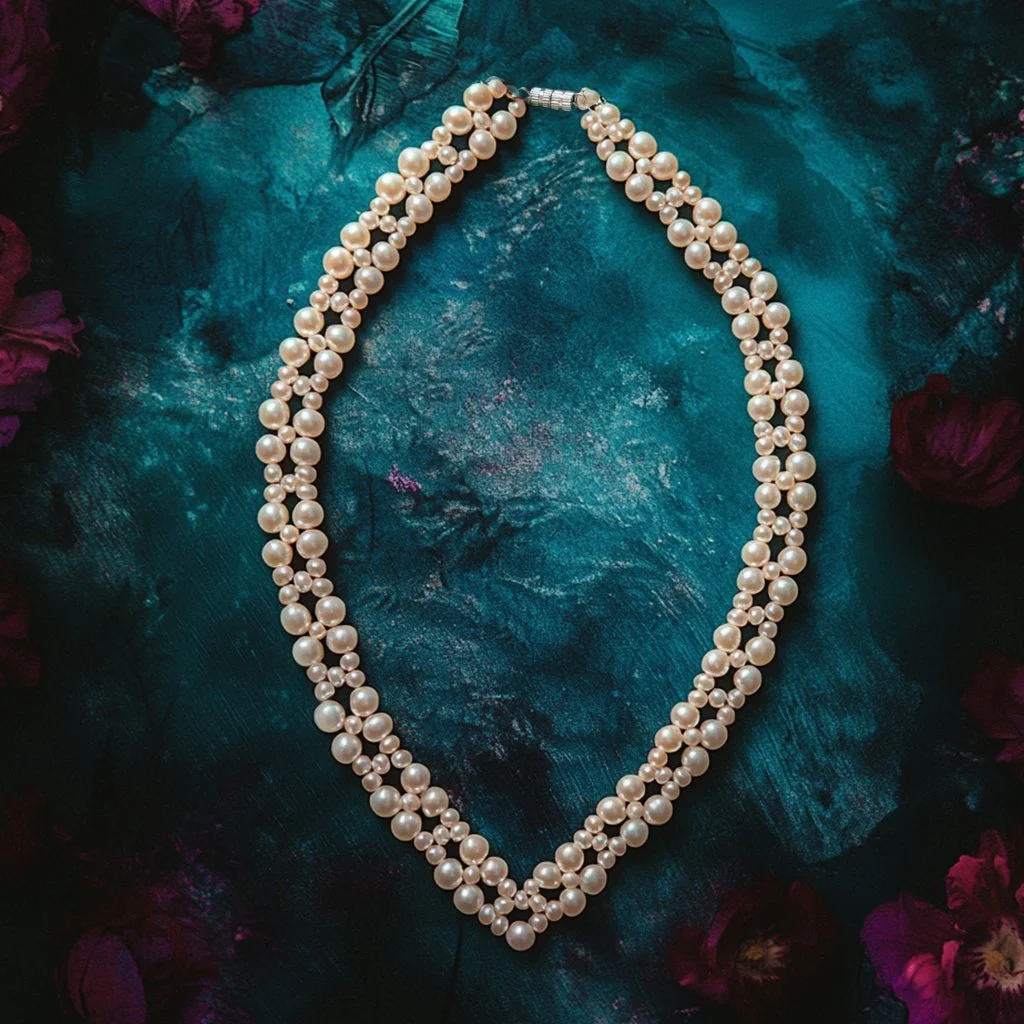 Új hobbimmá vált a gyöngyfűzés, így elkezdtem sorozatban gyártani a szebbnél szebb nyakláncokat. Nem vagyok jó fotós, de kíváncsi voltam létre tudnék-e hozni egy photoshoot-ot Midjourney segítségével. Szerintem így azért szebb lett, mint az eredeti kép.
